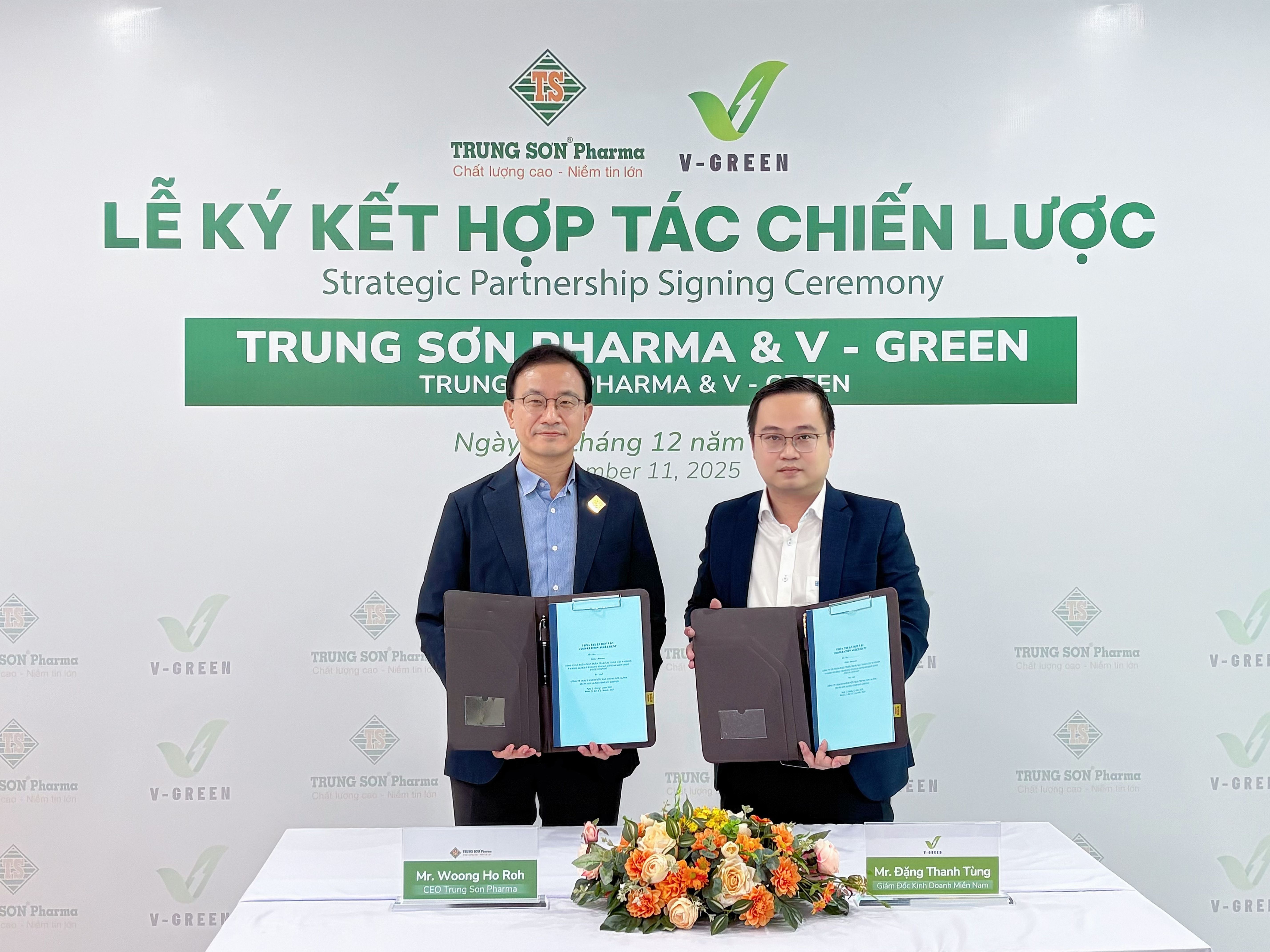 Ngày 11/12/2025, tại Cần Thơ, Công ty Cổ phần Phát triển Trạm sạc Toàn cầu V-Green và Hệ thống Nhà thuốc Trung Sơn – Trung Sơn Pharma đã chính thức ký kết hợp tác chiến lược, triển khai mạng lưới trạm sạc ô tô điện và tủ đổi pin xe máy điện trên toàn bộ hệ thống hơn 250 nhà thuốc. Sự cộng hưởng giữa thương hiệu bán lẻ dược phẩm uy tín và đơn vị tiên phong trong phát triển hạ tầng sạc, thỏa thuận được đánh giá là bước tiến mới, đóng góp cho mục tiêu chuyển đổi sử dụng giao thông xanh tại khu vực Đồng bằng Sông Cửu Long.